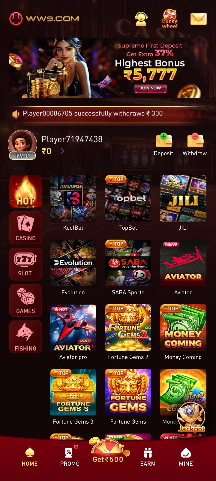 New users can claim a 200 welcome bonus and start playing instantly. WW9 Game also offers first deposit bonuses, free spins, cashback rewards, and daily earning opportunities.
